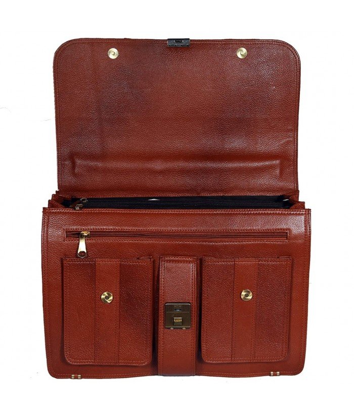 Mozri Leather 17'' Inch Laptop Men's Briefcase Bag Up to 16'' Inch Laptop Compartment 24 Litre's Capacity Expandable Feature's Amite Swiss Security Lock Closure